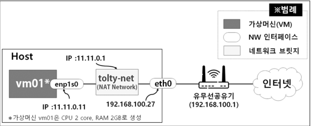 브리지는 KVM 가상머신의 인터넷 연결을 위해 네트워크 주소 변환을 사용합니다.