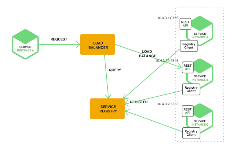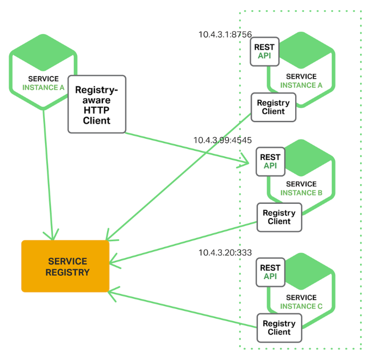 마이크로 서비스가 다른 마이크로 서비스를 호출하려면 대상의 IP, Port를 알아야한다.
