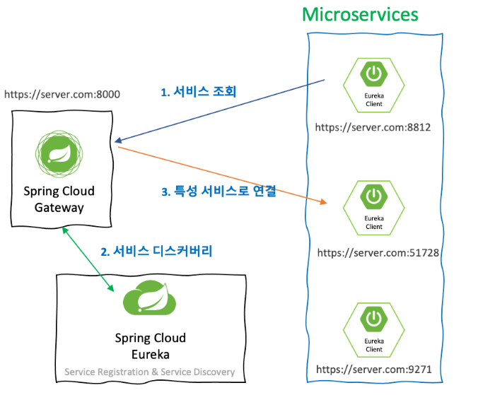 - Spring에서 Gateway 와 Eureka 구조를 잘 설명함